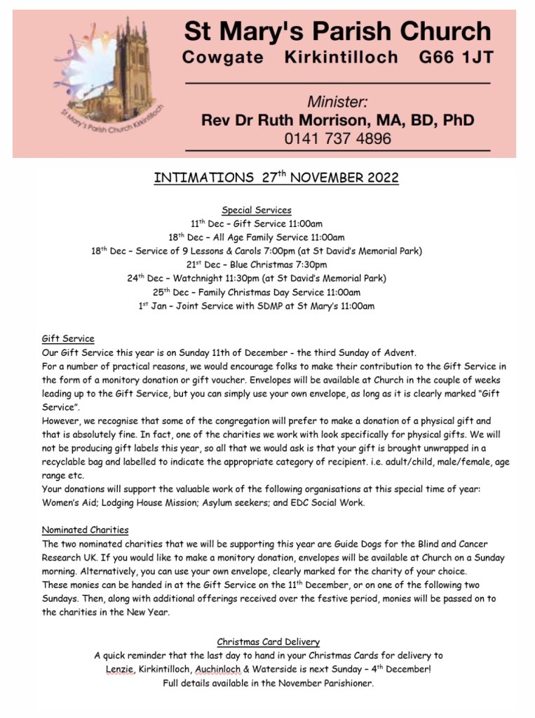 Posted November 24, 2022 by Stephen McKean Uncategorized 27th November – Intimations CategoriesUncategorizedShare this: Click to share on X (Opens in new window) X Click to share on Facebook (Opens in new window) Facebook Like Loading... Stephen McKean View All