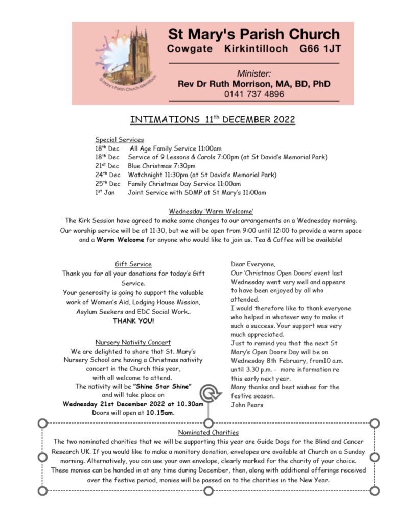 Posted December 11, 2022 by Stephen McKean Uncategorized Intimations 11th December 2022 CategoriesUncategorizedShare this: Click to share on X (Opens in new window) X Click to share on Facebook (Opens in new window) Facebook Like Loading... Stephen McKean View All
