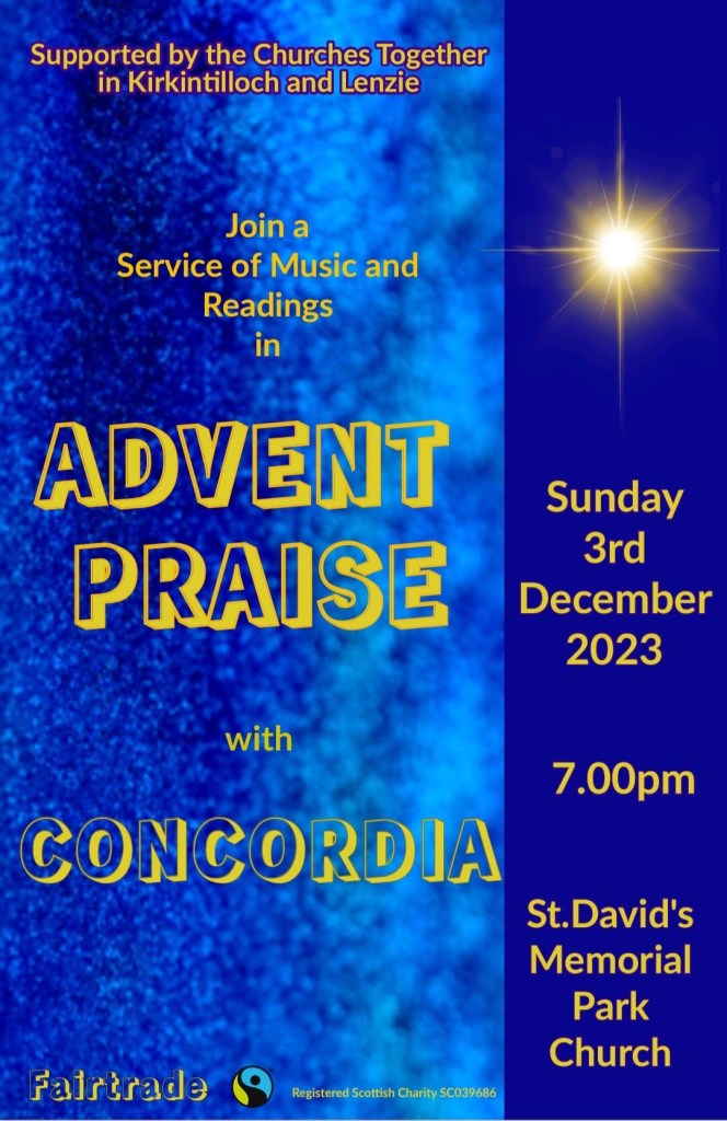 Why not join us for a Service of Music and Readings on Sunday 3rd December 2023 at St Davids Memorial Parch Church at 7pm.