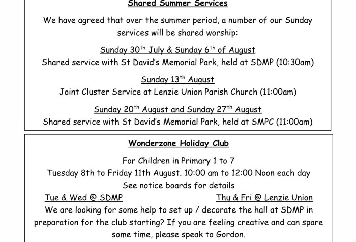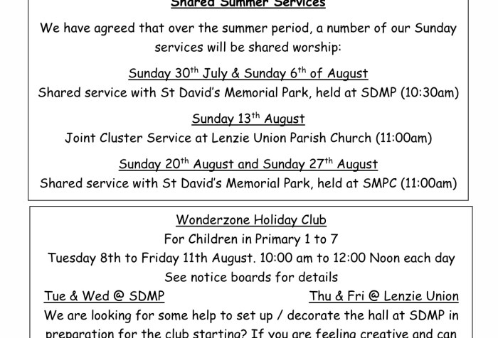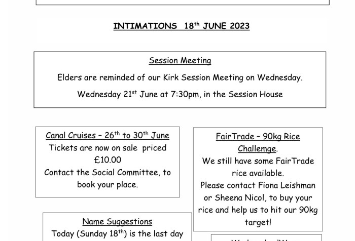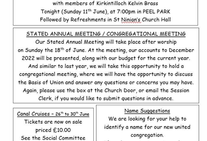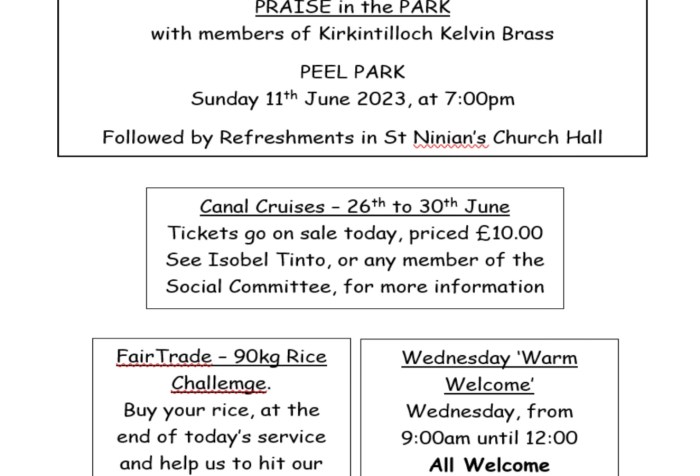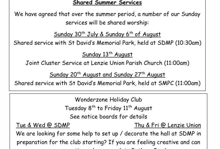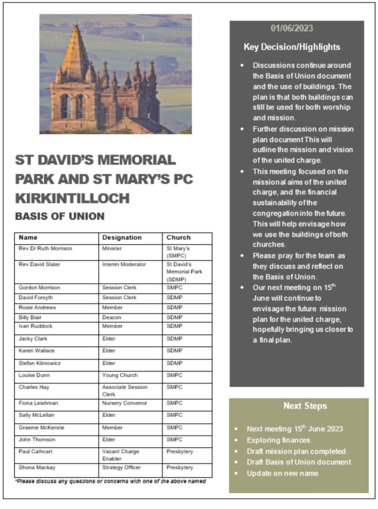 As you will be aware, we have re-opened our church Doors to our community on the first Wednesday of each month and I would very much like to thank everyone who has volunteered to support us on these occasions. Our next Doors Open Day will be on Wednesday 5th July 2023.