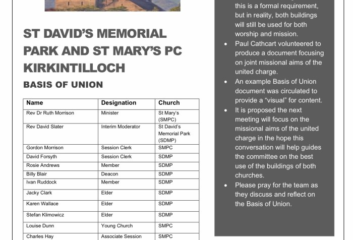 Just a reminder for Sunday 21st May 2023. Our joint cluster service at St David’s. We are also joined with our friends at Lenzie Union and Lenzie Old Parish Church. All are welcome.