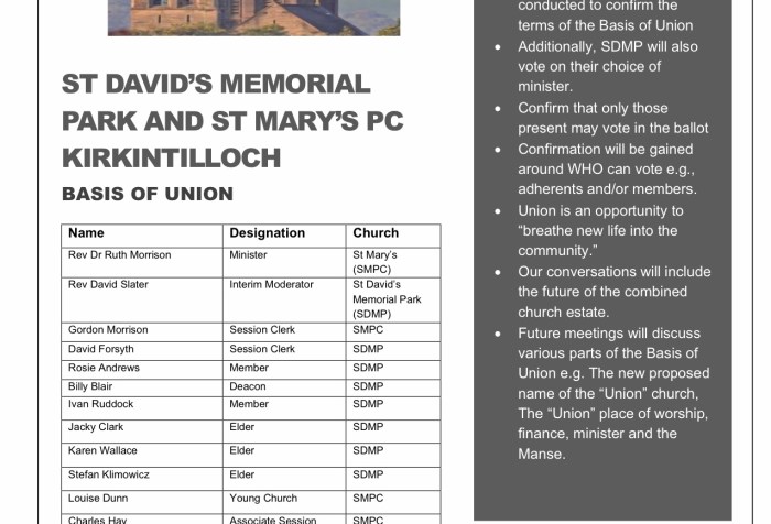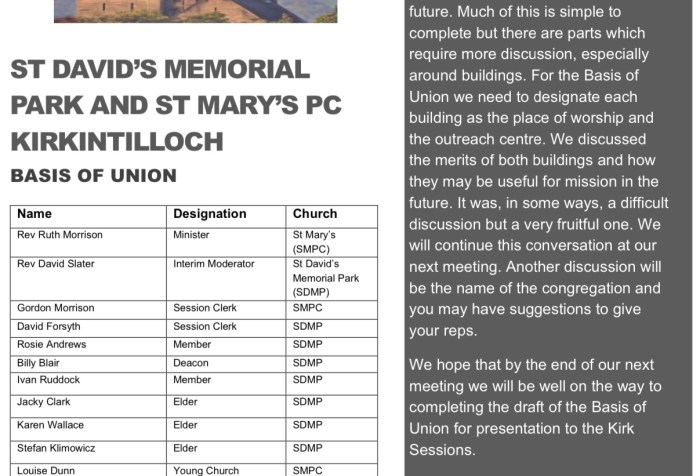 As you recall we have formed a Group that would be responsible for progressing our proposal to form a Union with St David’s Memorial Park. We want to keep you up to date over the next few weeks and months with Newsletters . Please find out 1st Newsletter .