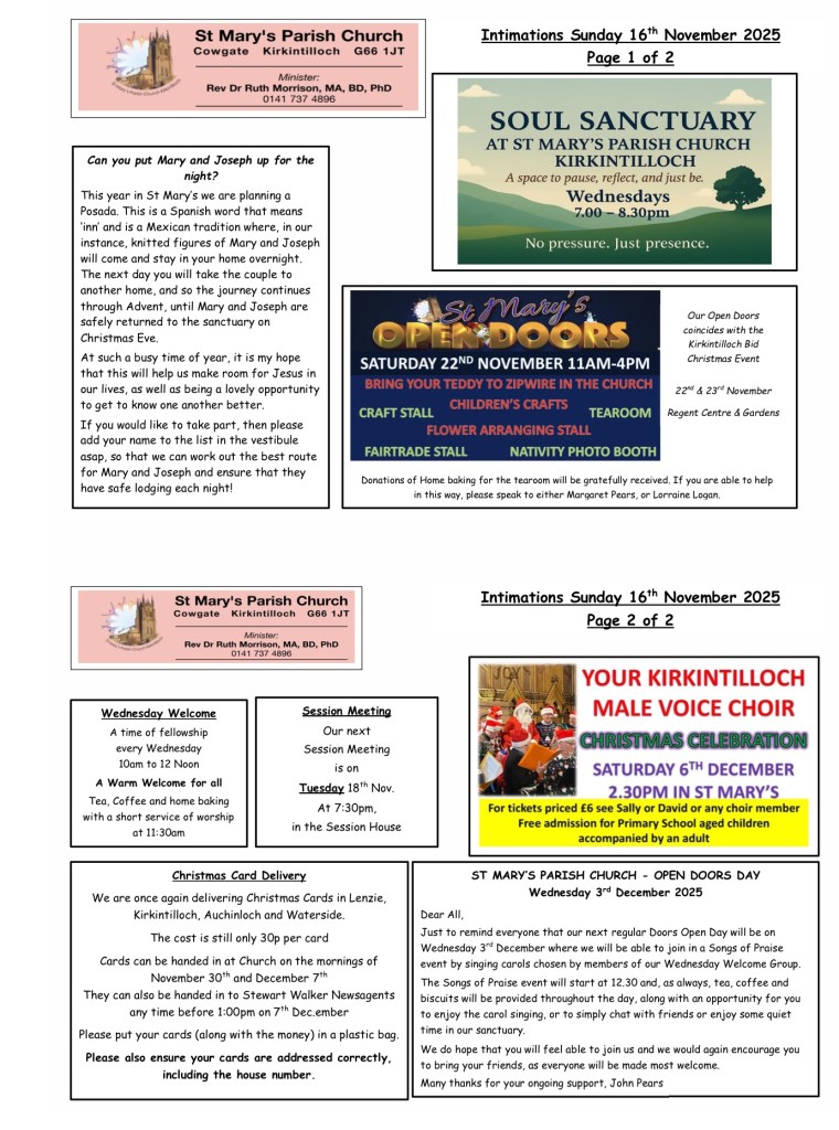 Our Armistice Day service today at the church. Thanks to all who attended and to Kirkintilloch Male Voice Choir for leading the hymns. Due to the inclimate weather we moved the service indoors.