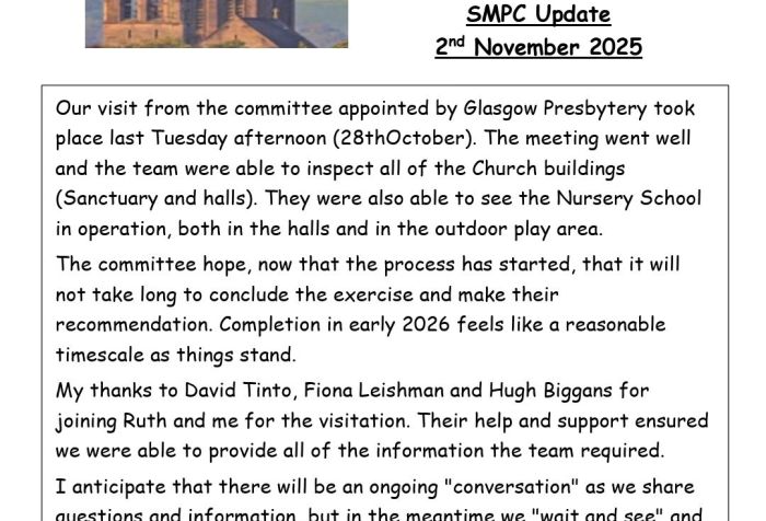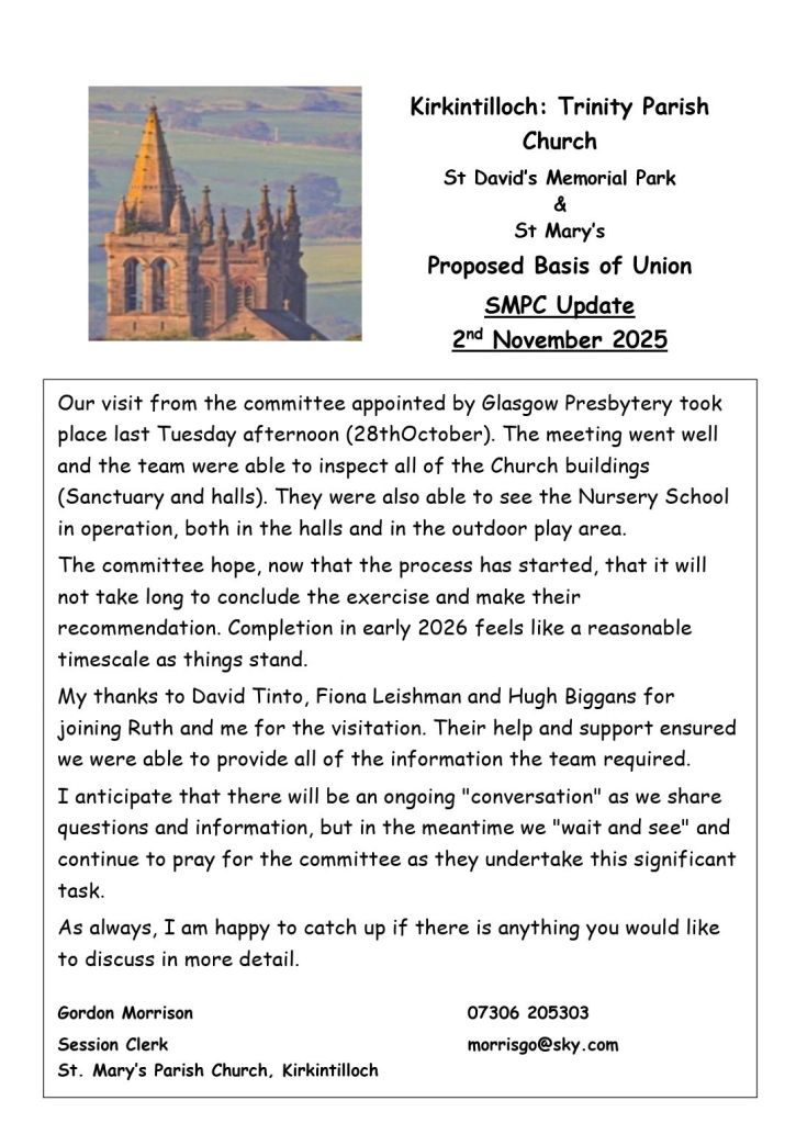 The Church also presented Certificates to D Burns for all the years David has played the Church organ and M MacNeill for Moria time at the Country Dancing.